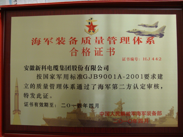 熱烈祝賀我公司獲得海軍裝備質(zhì)量管理體系合格證書