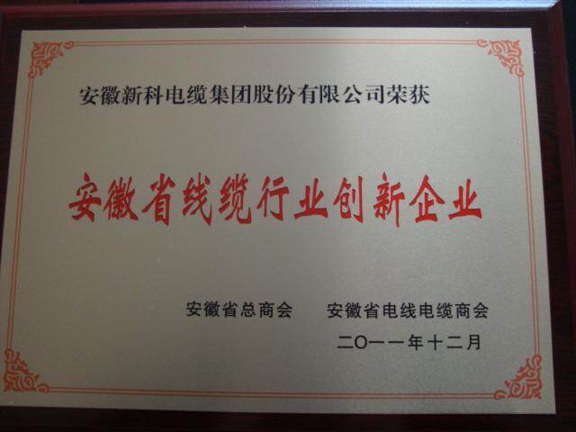 安徽新科電纜集團(tuán)股份有限近日榮獲安徽省總商會(huì)和安徽省電線電纜商戶聯(lián)合授予的“安徽省線纜行業(yè)創(chuàng)新企業(yè)”