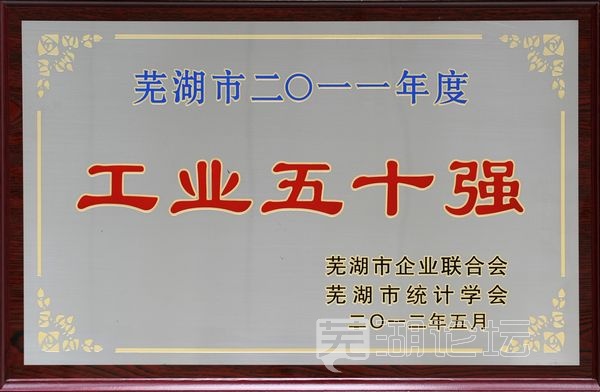 熱烈祝賀我公司獲得蕪湖市2011年工業(yè)50強